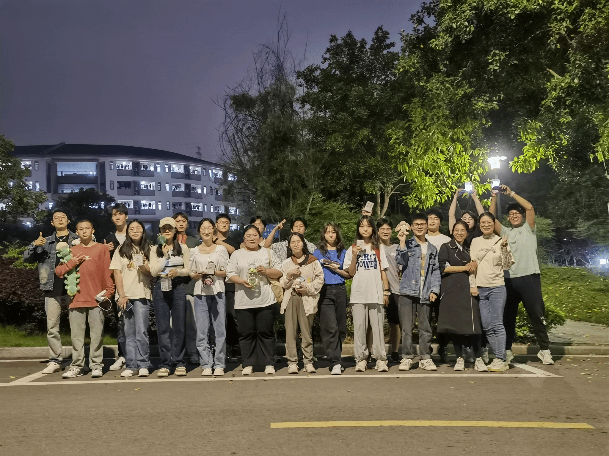大家也玩了两轮五角和一元成团游戏,其规则是:女生代表一元,男生代表五角,由负责人喊出具体的价钱,如:3.5,可由3女1男,或者2女3男等均可,抱团成功的留下继续游戏,失败的立即淘汰,直至剩下5人以下。该游戏由我负责来喊价,冯老师维持秩序,学生们转圈跑动,听到余老师的指令立即成团,10秒后未成团的淘汰。该游戏瓜分了剩余所有的奖品,包括一等奖,以及之前未发完的二、三等奖。