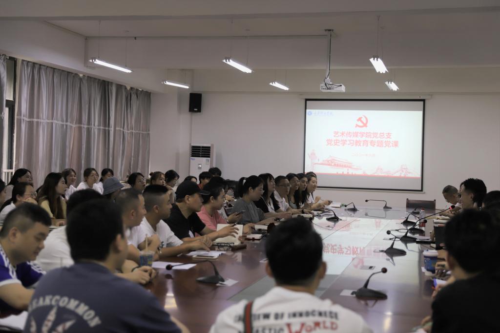 为贯彻落实中共中央关于党史学习教育的文件精神,继承与发扬中国共产党的历史经验与优良传统,进一步坚定全体师生党员的理想信念,艺术传媒学院党总支于6月23日在8101会议室开展党史学习教育专题党课。艺术传媒学院党总支书记李轶天、党总支副书记李克伟分别为师生党员上党课,艺术传媒学院全体师生党员参会。