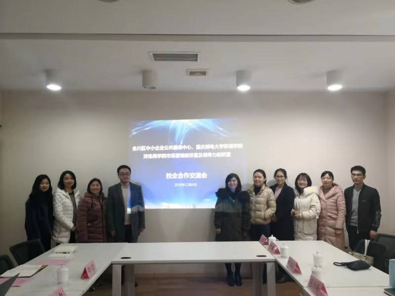 为进一步融通校企合作,搭建储备人才平台,12月4日,重庆邮电大学移通学院淬炼商学院市场营销教研室主任寇小玲、教师李晓燕、胡佳婷、叶璐和潘泉宏以及领导力教研室教师王草、谭小珂、陈颖走进重庆市合川区中小企业公共服务中心,就双方合作事宜进行了深入沟通和交流,进一步推进双方合作项目的落实。合川区中小企业服务中心党委书记、副主任谭力、中心工程管理夏滔、中心校企合作部邓莹等一同出席了座谈会。