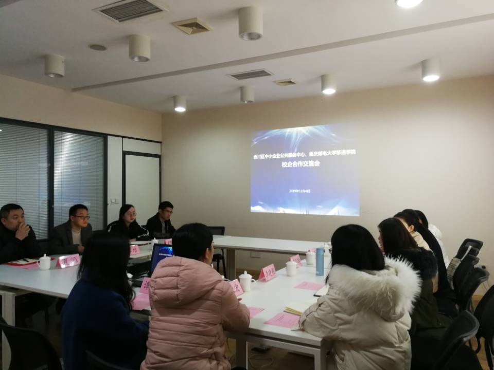 在交流环节中,首先由合川区中小企业公共服务中心党委书记谭力介绍了服务中心的主要业务、组织架构、企业文化以及企业管理等相关情况,随后,我校市场营销教研室主任寇小玲老师介绍了重庆邮电大学移通学院淬炼商学院专业设置、人才培养模式以及校企合作情况,并提出了市场营销专业在校企合作方面的问题和困惑。