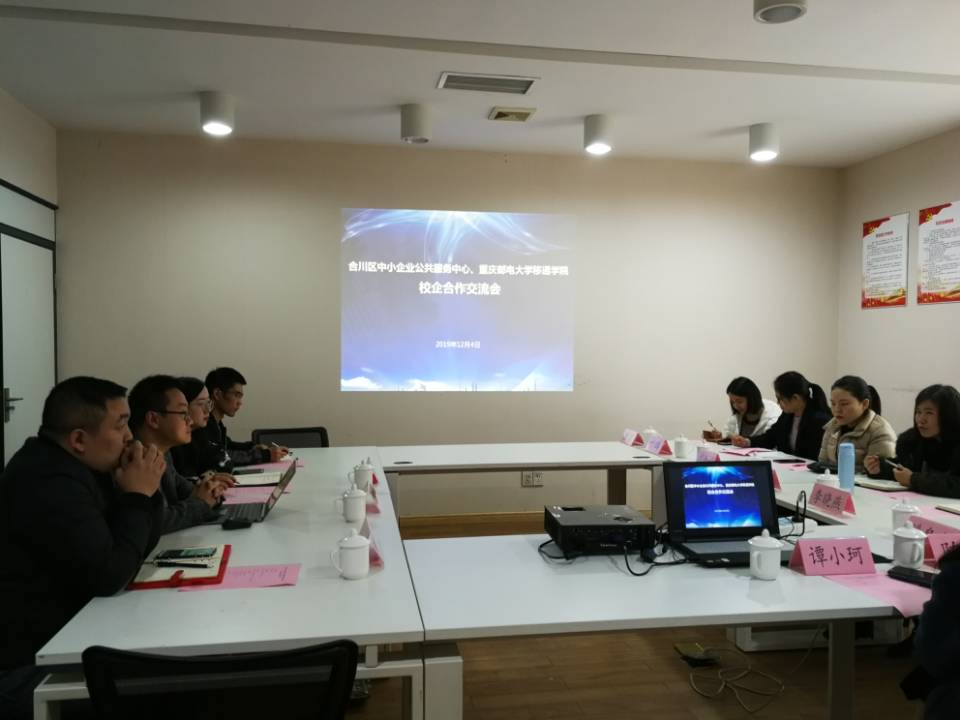 重庆邮电大学移通学院定位于信息产业商学院,培养信息产业中小企业中高层管理者,而合川区中小企业公共服务中心是中小企业的智库和保姆,与我校的定位不谋而合。本次交流座谈会是学校与合川区中小企业公共服务中心校企合作的一次有效探索,双方通过发挥在各自领域的优势,双方合作必将取得“1+1>2”的效果。