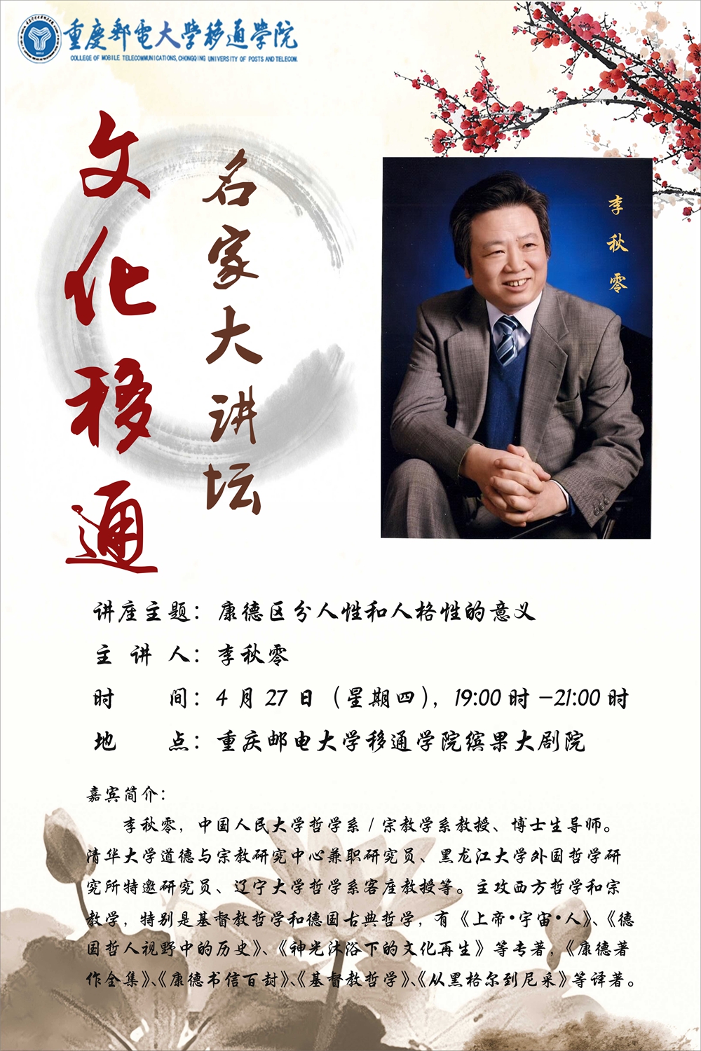 名家大讲坛听后感征集:凡听讲座的同学,讲座结束后可报名参加嘉宾座谈会。也可将听后感(不少于500字)发至邮箱wenhuayitong@163.com,注明姓名、专业、学号。听后感整理编辑后正式出版。