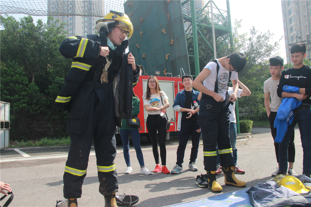 出现事故时,每一秒都是生命的倒计时,接受任务、整理装备、穿戴服装、短短二三十秒准备就绪,然后出发,这是每个消防员的必备技能。但我们亲身实践后才发现,这远远没有我们当初想象的威风凛凛,满满的都是艰辛。正如我们实现梦想的时那一张张笑脸背后,是无数个夜的努力和坚持。随后,消防员们又领带我们参观了消防车,从车上的装备名称到使用用途及使用方法,无一不让我们惊叹他们平时所处环境的危险,这些装备陪着他们走遍所有有危险的地方,也带领无数困境中的人脱离危险,他们是我们的超人,也是爱岗敬业中最平凡的存在。