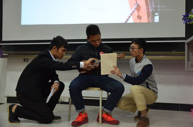 经过五轮评委投票之后选出了五个寝室的代表作品进入决赛,五组入围决赛的队伍依次上台做最后的拉票,动听的歌声、风趣的生活小段子、现场小咖秀、尤克里弹奏等为给大众评委留下深刻印象。现场气氛热烈。