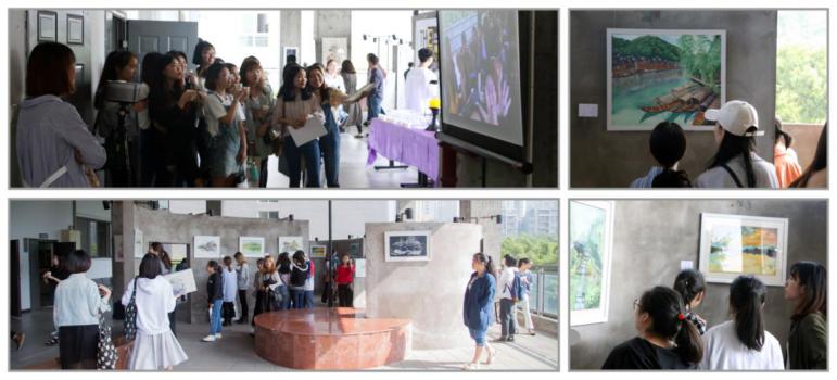 本次展览共展出70余幅优秀作品,结合风景色彩、速写、蜡染等多种形式,描绘苗族古民居建筑风格、生活小景和自然风光,表现湘西人文与自然风光完美结合的独特意蕴。作品风格迥异、生动形象,或娟秀工整,透露古韵之风;或大胆豪放,体现苍劲之气;或色彩淡雅,流露古巷静谧;或浓郁之彩,彰显村落热闹。林荫小道、古朴建筑、潺潺流水尽显其中,每一幅作品都蕴含着浓浓的人文气息。写生展现场人流涌动,影展、画展相得益彰,形成了一道独特别样的风景线,吸引了诸多师生的目光,也收获了大家的一致好评。