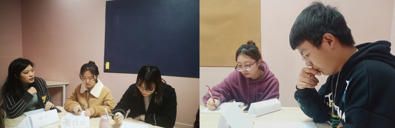 实训中,两位导师对每位同学在讨论中的细节进行记录,指出了同学们在实训过程中对于角色分配、行为与习惯细节的注意、有效发言次数的判断、情绪态度的控制等问题,使同学们深刻体会到在无领导小组讨论,不仅要注重与对手的博弈,还要注重自身各因素之间的协调。