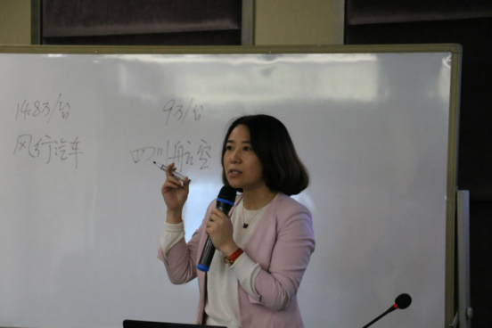商业模式的含义,用途以及设计,这是李莉老师在讲座开始时所提出的三个问题,由此提出商业模式的重要性。为了让台下的听众更直观的理解川航的商业模式,李老师在黑板上板书了川航与风行汽车的案例,由此引申出商业模式创新对于一家企业发展壮大的重要作用。为方便大家记忆,李老师将商业模式的九部分用生动形象的事物构成一副商业画布。老师将同学们分成九组,通过观看苏宁易购的视频让大家找出苏宁商业模式的九个部分,使大家充分了解“4+3+2”的商业模式,通过互动的方式不仅活跃了现场气氛,更增强了台下听众关于商业模式设计与创新的理解和记忆。