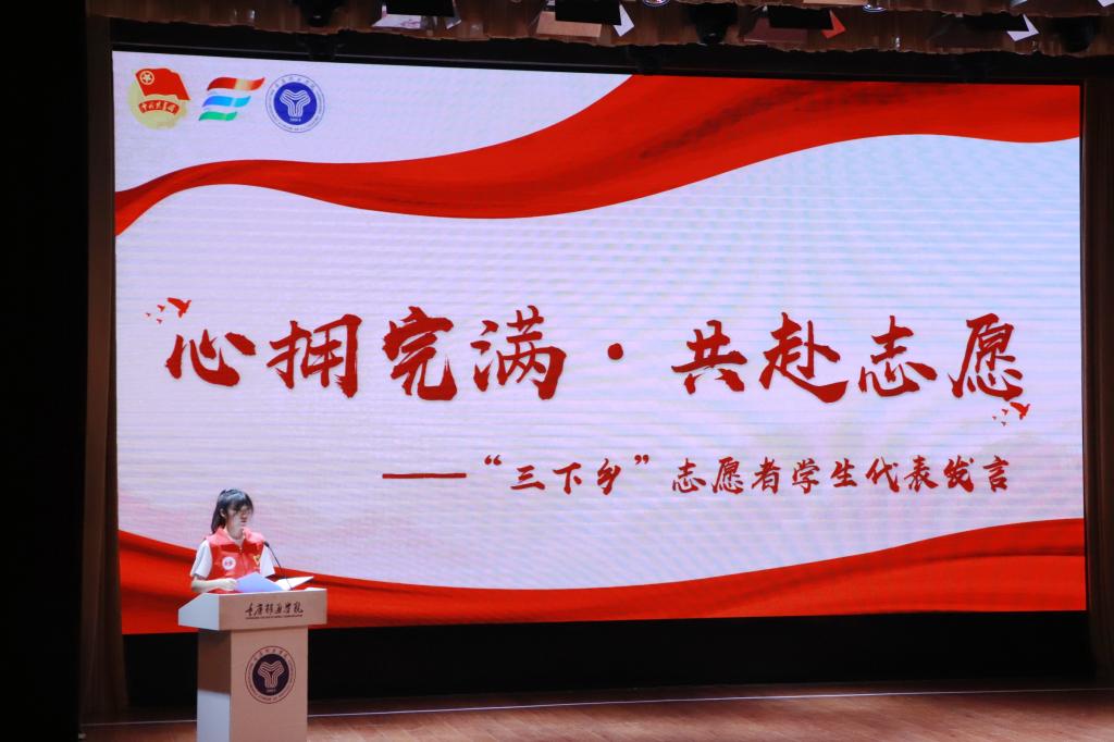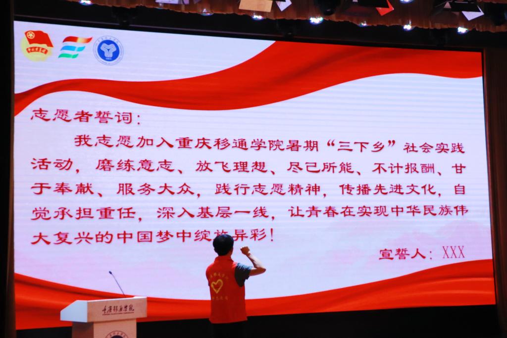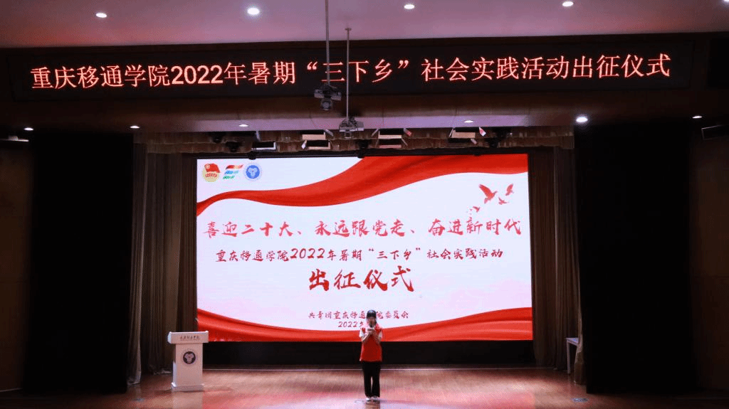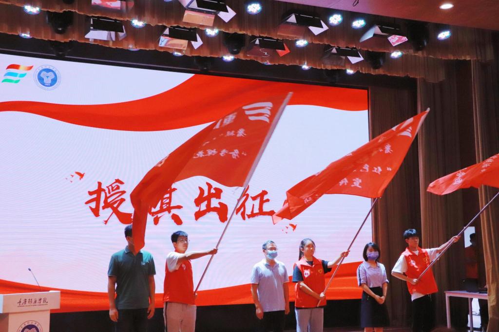为深学笃用习近平新时代中国特色社会主义思想,深入学习宣传贯彻习近平总书记在庆祝中国共产主义青年团成立100周年大会上的重要讲话精神,引领我校青年大学生积极投身以“喜迎二十大、永远跟党走、奋进新征程”为主题的暑期“三下乡”社会实践活动,展现我校青年的责任与担当。校团委于7月1日10:00在下里巴人剧场举行2022年暑期“三下乡”社会实践活动出征仪式。校党委组织宣传部部长苏述庚老师、校团委书记谢银平老师、书院部部长穆春江老师、各学院学工副院长、团总支书记及各“三下乡”实践团队师生代表共计100余人参加本次出征仪式。