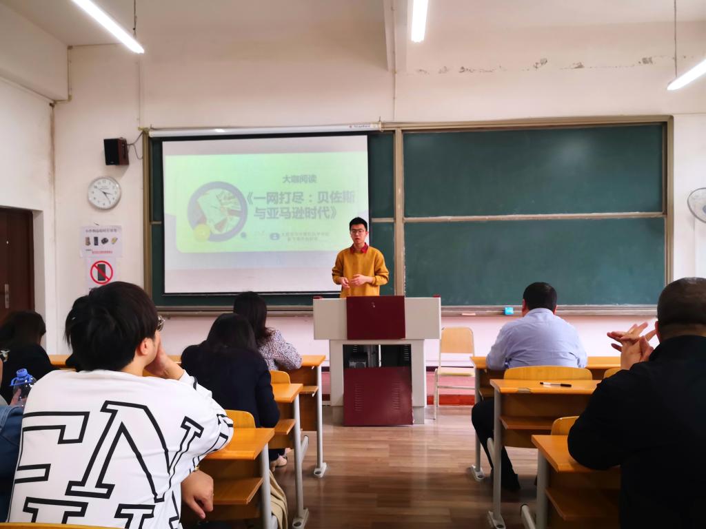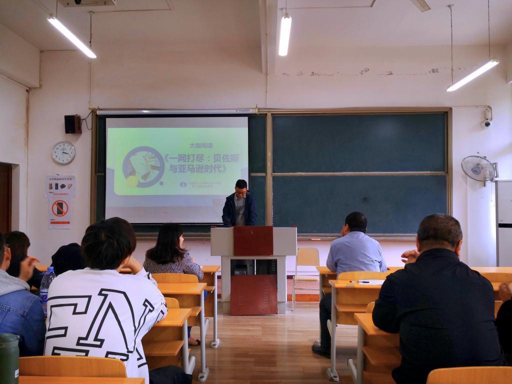 为响应我校信息产业大咖传记阅读计划,营造良好读书氛围,3月22日下午,大数据与计算机科学学院数字媒体技术教研室全体教师在7212开展了信息产业大咖阅读分享会。此次活动由数字媒体教研室主任钟怡老师主持,分享的信息产业书籍是《一网打尽:贝佐斯与亚马逊时代》。《一网打尽》是一本受到贝佐斯鼎力支持出版的图书,是继《史蒂夫乔布斯传》后又一本重要商业书籍。写作期间,作者Brad Stone采访现任和前任高管及员工就达300多次,书中还包括这些年来与贝佐斯的多次面谈,它是亚马逊成长史的一个主要见证。这本书是一部关于这家互联网公司的无限创新与令人瞠目的发展史,是每一个希望了解新数字经济态势的人都应该阅读的作品。