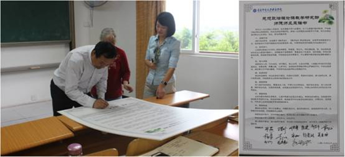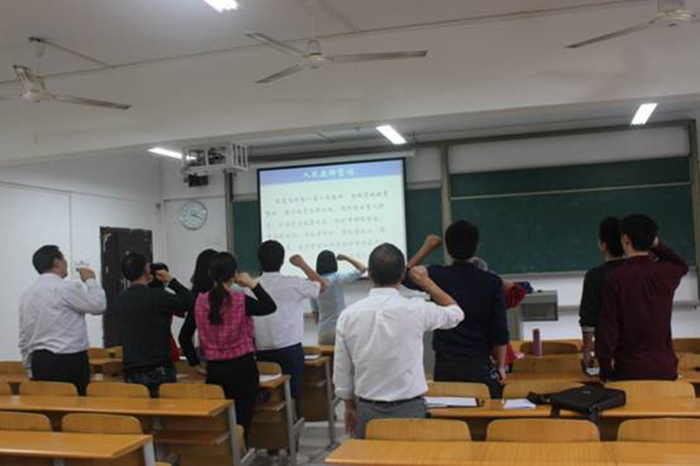 会议最后,思政教学部全体教师面对《人民教师誓词》,在邓燕主任的领誓下,进行了严肃而庄重的宣誓:“我志愿成为一名人民教师,忠诚党的教育事业,遵守教育法律法规,履行教书育人职责,引领学生健康成长,做到有理想信念、有道德情操、有扎实学识、有仁爱之心,为教育发展、国家繁荣和民族振兴努力奋斗!”宣誓结束,全体教师还在《思想政治理论课教学研究部师德师风承诺书》上郑重签下自己的名字,以履行自己的教师职业的承诺。