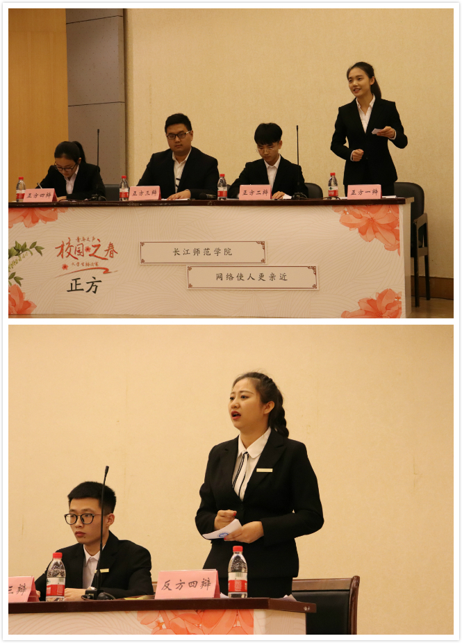 最终,我校代表队以2:3的成绩憾负长江师范学院代表队获得季军,我方三辩陈铭荣获本场“优秀辩手”。虽未能晋级决赛,但我校代表队从初赛一路高歌猛进,以骄人的成绩冲刺到半决赛,极大的彰显了移通学子的辩论风采。
