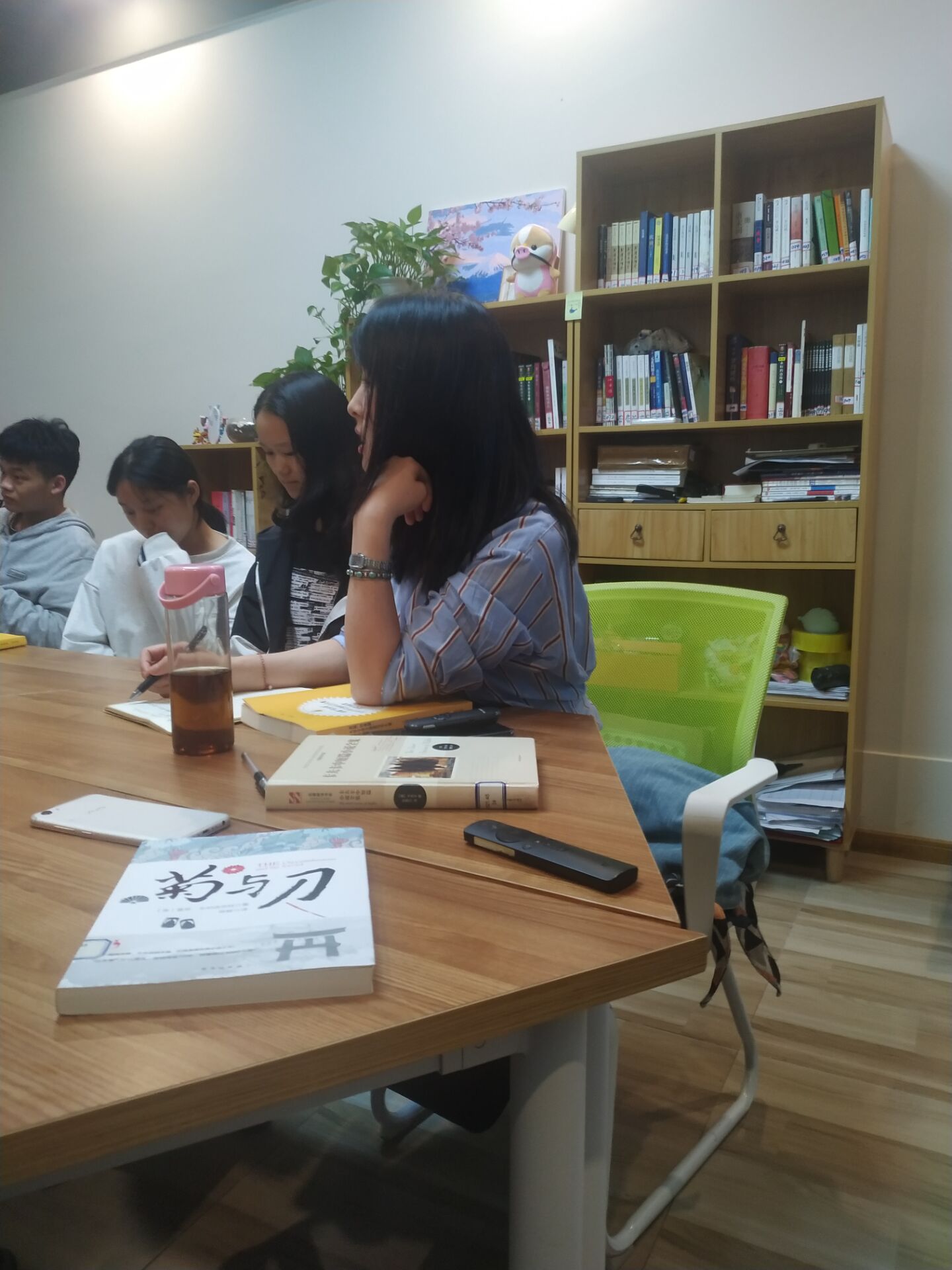 吴老师说她自己经常会在日常生活中做这样的“灵感训练”,走在街上,在某一座建筑前面,给自己随机确定下一个时间、地点、人物,线索,然后试着构思一篇小说。“当我们灵感枯竭,感觉没什么东西可写的时候,这样的‘画面’式回忆能够帮助你打开通往记忆的道路。”吴老师说道。文学社社长朱小超在这个环节里很快就有了创作的灵感,他说屏幕上出现的火车画面,让他想起了有一年夏天从兰州到青海西宁的火车之旅,以及在那次旅行中发生的一些故事。