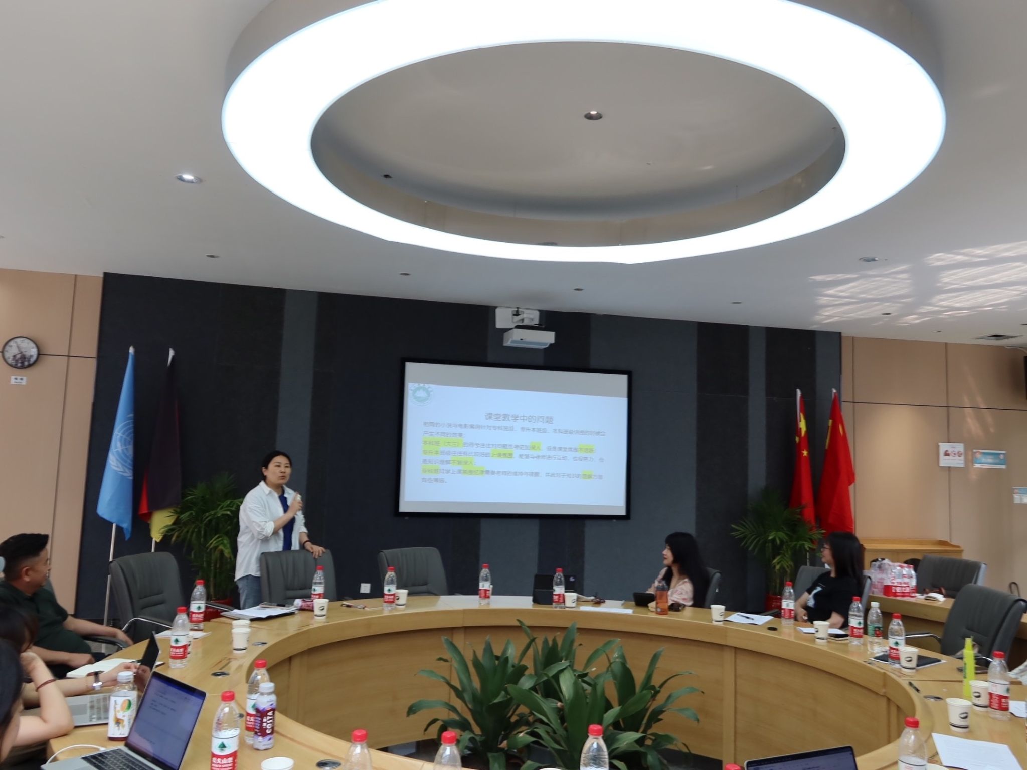 会议伊始,主持人陈霞老师概述会议宗旨,依次介绍参会成员,并概述会议议程包含教师代表发言和全体自由交流两部分。紧接着,陈老师作为首位发言代表,借助3W1H(Which、Who、What、How)框架,分享了自己在选案例、选搭档、选内容、选合作模式过程中采取的有效策略。她指出,合作搭档的态度、研究偏好,以及合作模式选择“队友”还是“对手”,都是双师课前期准备的考虑要点。