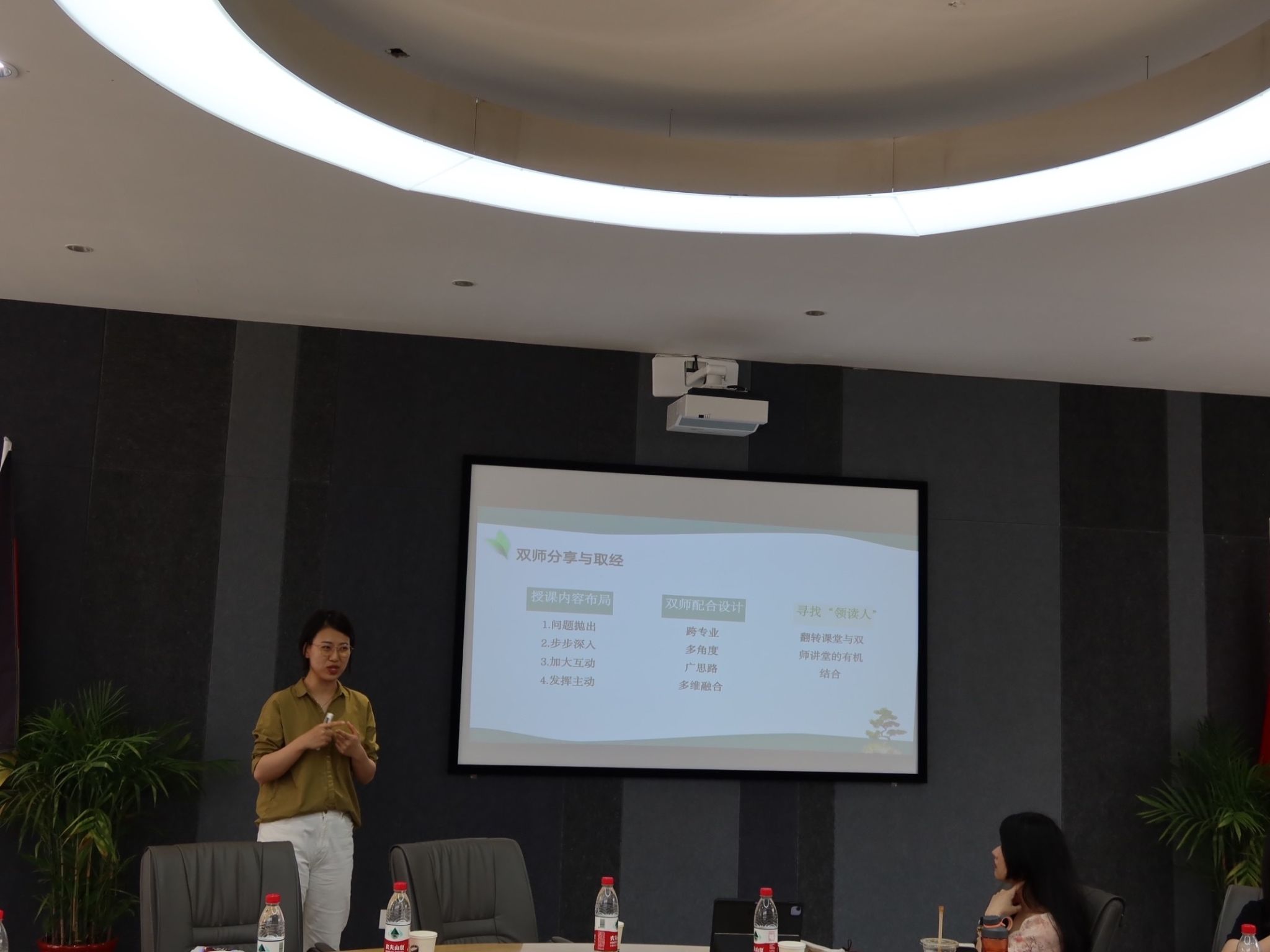晋中信息学院教师代表赵静老师从授课内容布局、双师配合设计、寻找“领读人”三方面分享其双师经验。赵老师以《嫌疑人x的献身》为例,介绍了独树一帜的寻找“领读人”授课形式:它基于“翻转课堂”的时代背景,将学生设置为课堂主导者,以学生领读、师生共听的创新方法,增强课程互动性,活跃课堂氛围,为践行双师模式锦上添花。随后,与赵老师同校的闫莹老师分享了自己与创意写作学院合力打造的“访谈问答式”双师课堂,区别于传统教学中的严肃说理,轻松的对话氛围使学生易于融入学习当中。