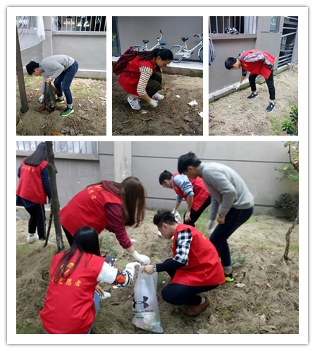 为了丰富同学们的课余生活,为了帮助同学们树立更强的环保意识,也为了让同学们了解到环保的重要性,2017年10月31日中午12点30分,北山书院的全体干部干事在北山书院宿舍区展开了志愿者环保活动。