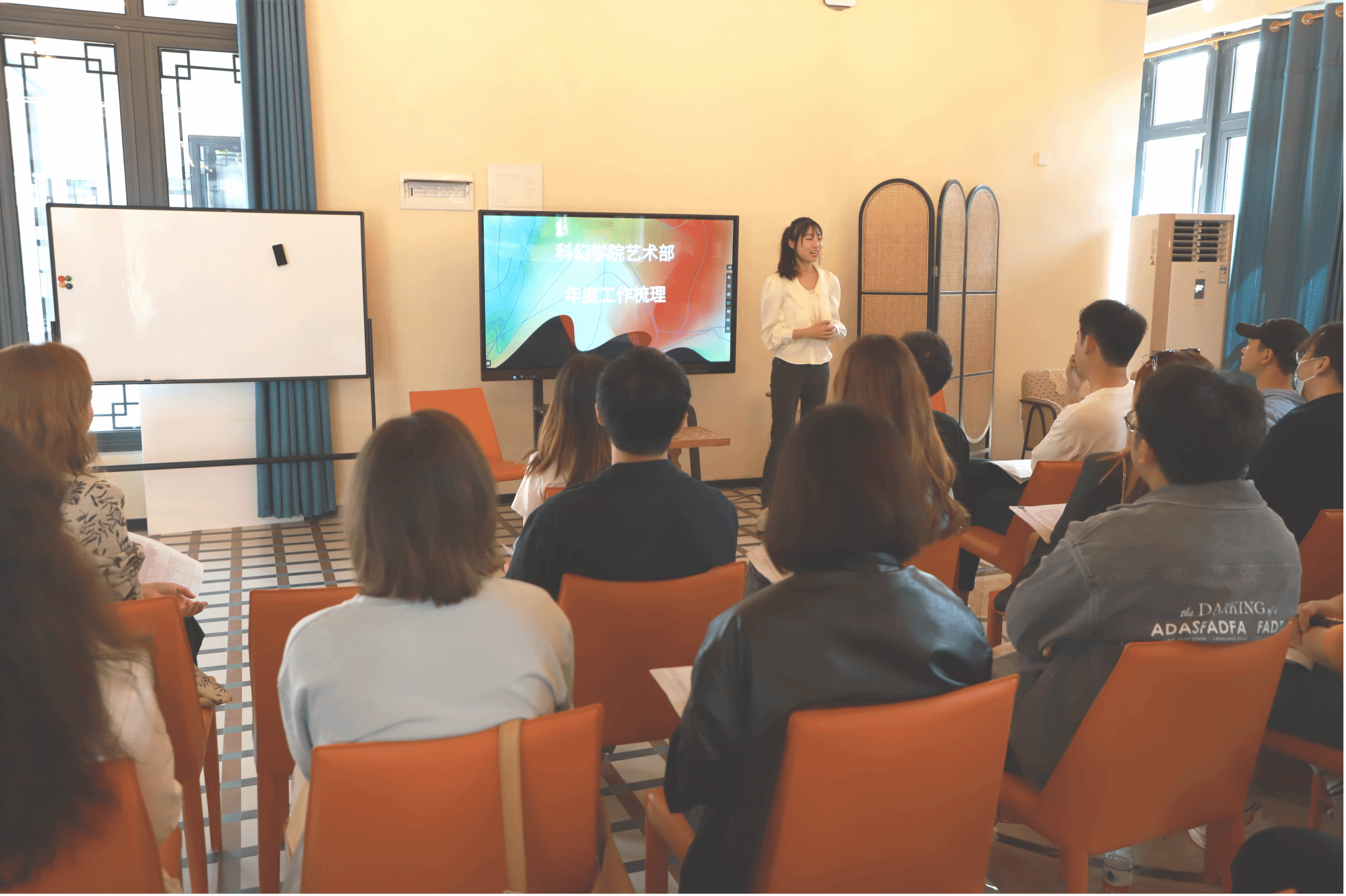 针对本年度艺术教学、艺术活动、艺术排演等工作,双方相关负责人分别进行了工作计划的梳理。科幻学院艺术部主管宁思洁从教学、科幻项目、艺术创作等不同板块,对科幻学院艺术工作进行了全面介绍,展示了师生共创的相关艺术成果,过程中也分享了科幻学院如何在教学、融合、活动中落实艺术教育的理念。