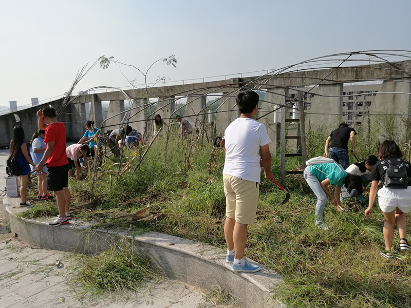 灼人的日光,扎人的草丛,无一不在考验着大家,而新生们表现出来的不怕苦,不怕累的精神让他们敢于直面劳作艰辛的考验。脸颊上如黄豆一般大小的汗水,润湿了脚下的一片土地,被汗水浸湿的衣服,紧紧的贴在身上,大家弯下身子,右手拿起镰刀,左手抓起一把杂草,用力一割,你一把,我一锄地劳动起来,丝毫没有倦怠之感,脸上的笑容却更加甜蜜,面庞绽放出如花一般的笑容,这种笑容没有丝毫的做作,真挚、感人、幸福……