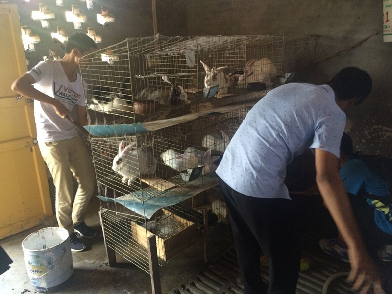 另一边,兔舍清洁打扫工作也正在如火如荼地展开着,炎热的天气,粪便与空气的发酵混合,让兔舍充满了“味道”,无一不在考验着大家的毅力,但大家丝毫没有捂鼻退缩,认真地为养殖基地打扫卫生,让动物们在炎热的天气里有一个干净、清爽的生存环境。大家一边打扫,农场的指导老师陆老师还一边为大家讲解起来关于兔子养殖的知识,让我们在劳动中学习、在劳动中成长。