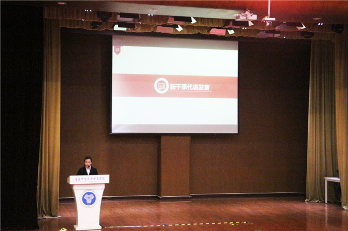 新晋干事代表发言,通过讲述自己未来在招协的一些期望与努力方向,让全体干事们都精神抖擞,让整个会场的气氛也变的热烈起来。