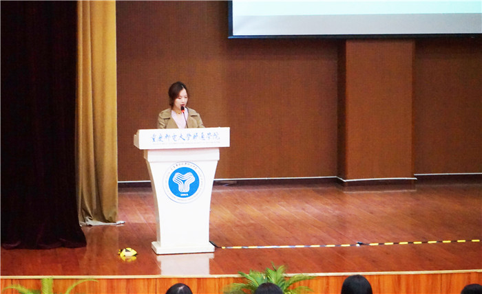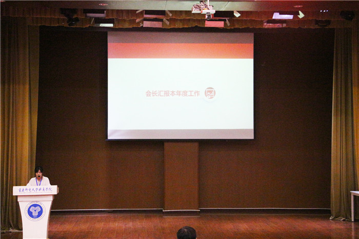 新一届会长谭蕾进行汇报工作,总结及分享自己在招协两年里的工作经验和感受,让新干事清楚并了解协会宗旨,以及明白实践学习才能让自己变得更好,积累经验才能成长。