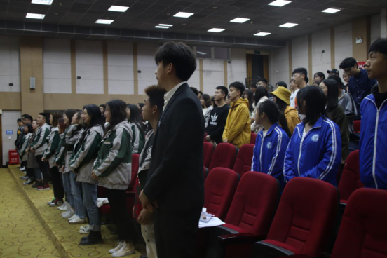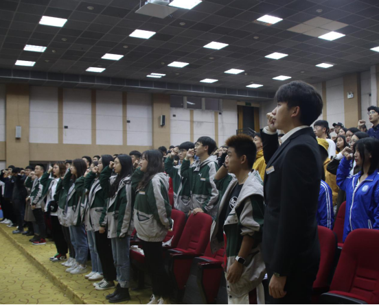 那舞动着的旗帜,代表的不仅是“灯塔”计划,更代表着是社长要承担的责任以及学校对他们的信任,将这份责任与信任交接到了社长的手中,全体直立,握拳高举右手,对旗宣誓,在这一声声慷锵有力的宣誓中,我们看到了社长们的信心以及决心,相信在他们的引领下学生社团一定会越来越好。