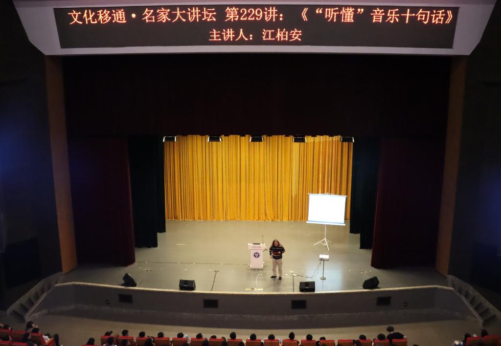 在谈到“当代人音乐生活”时,江老师告诉在座同学们,带有商业性质的艺术会或多或少地染上不好的气息,这会影响艺术本身的灵性与生命。针对此现象,他建议同学们应当抓紧时间多了解文化与艺术,借助大学这个分享智慧的场所多汲取精神养料,用心去提高自己的感知能力。在谈到“不接触高雅音乐是因为高雅音乐太深奥”的矛盾问题,江老师解释道,音乐的鉴赏没有原则,这不是一个非黑即白的问题,它取决于个人的感受和阅历,音乐没有阶级之分,人人都可欣赏高雅音乐。