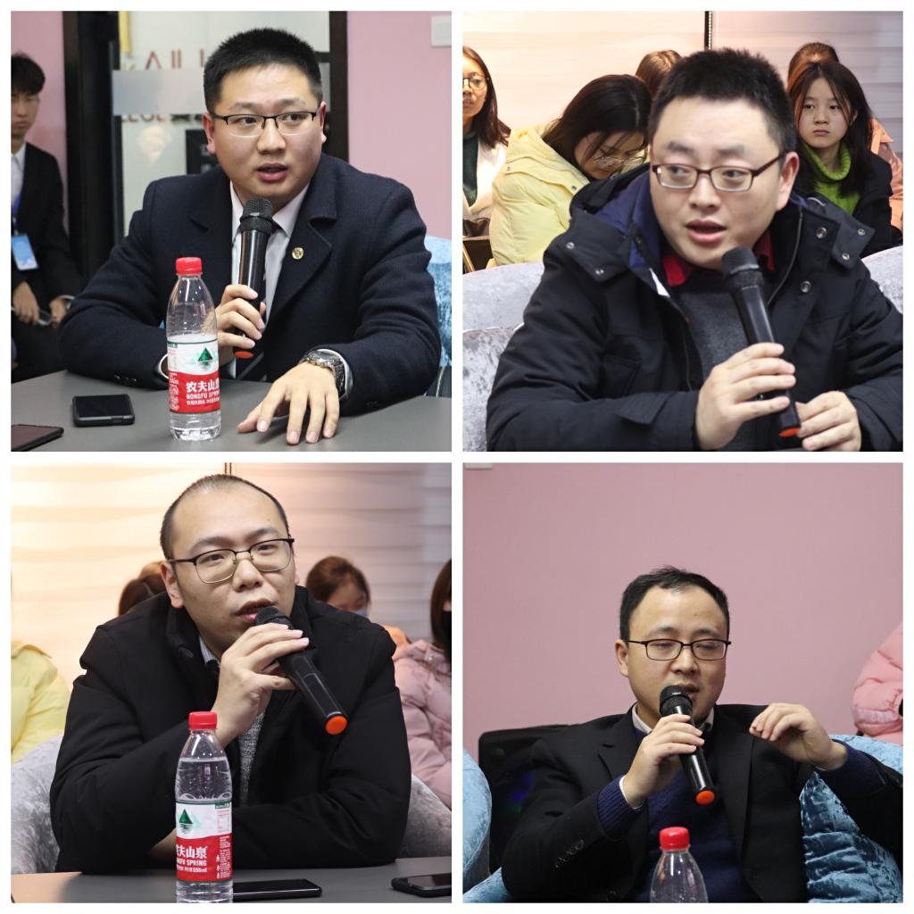 本期“对话新商科”活动以访谈形式开展。针对四位律师的个人成长经历和主要执业领域,主持人分别与四位律师进行交流。在问到能否给在座学子一些学习或考研上的建议时,唐舸权律师从自身经历出发,讲到了自己在本科学校西政学习时学到了“如何自律”,在研究生与博士生阶段学到了“如何具备开阔的视野”,南开大学教会了他什么是“家国情怀”,最后唐律师指出:“考研路上唯有明确目标,沿着目标努力,方能获取成功”。