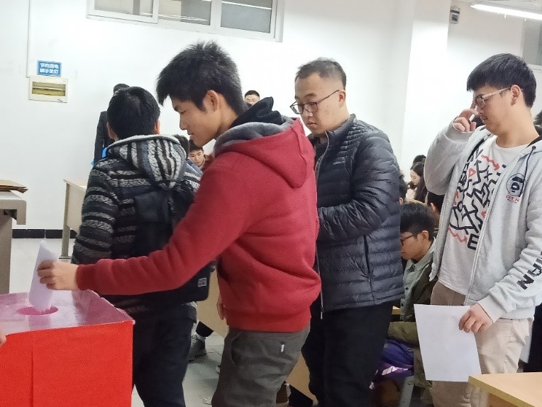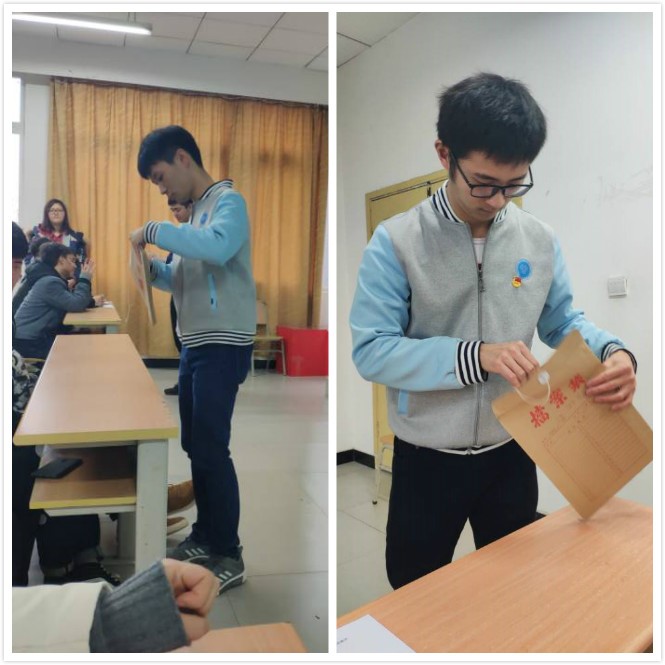 “背靠背”代表的是一种信任的姿态,在团支部书记工作中应当砥砺前行,敢于担当。在管理形式上,应以团支部为重心,增强民主机制。并承诺在接下来的工作中,会尽最大的努力带领团支部变得更好。紧接着,由团委组织部工作人员现场开启封装袋并分发测评表。每位支部成员针对团支部书记的工作情况,依次进行了公开投票。