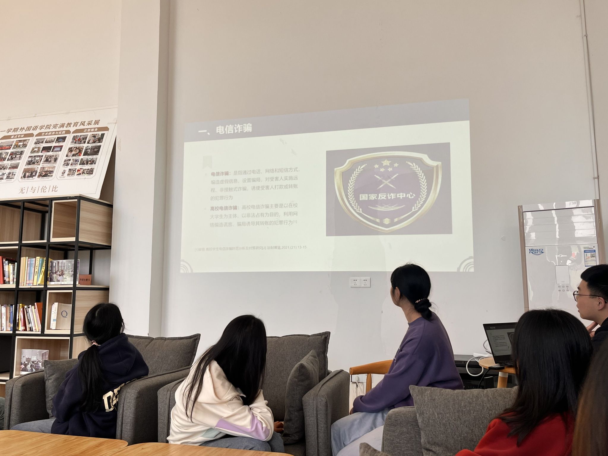 谭小珂老师通过开展线下反诈骗主题见面会与数字经济4班的同学相互交流和探讨诈骗形式,提高同学们的反诈意识。