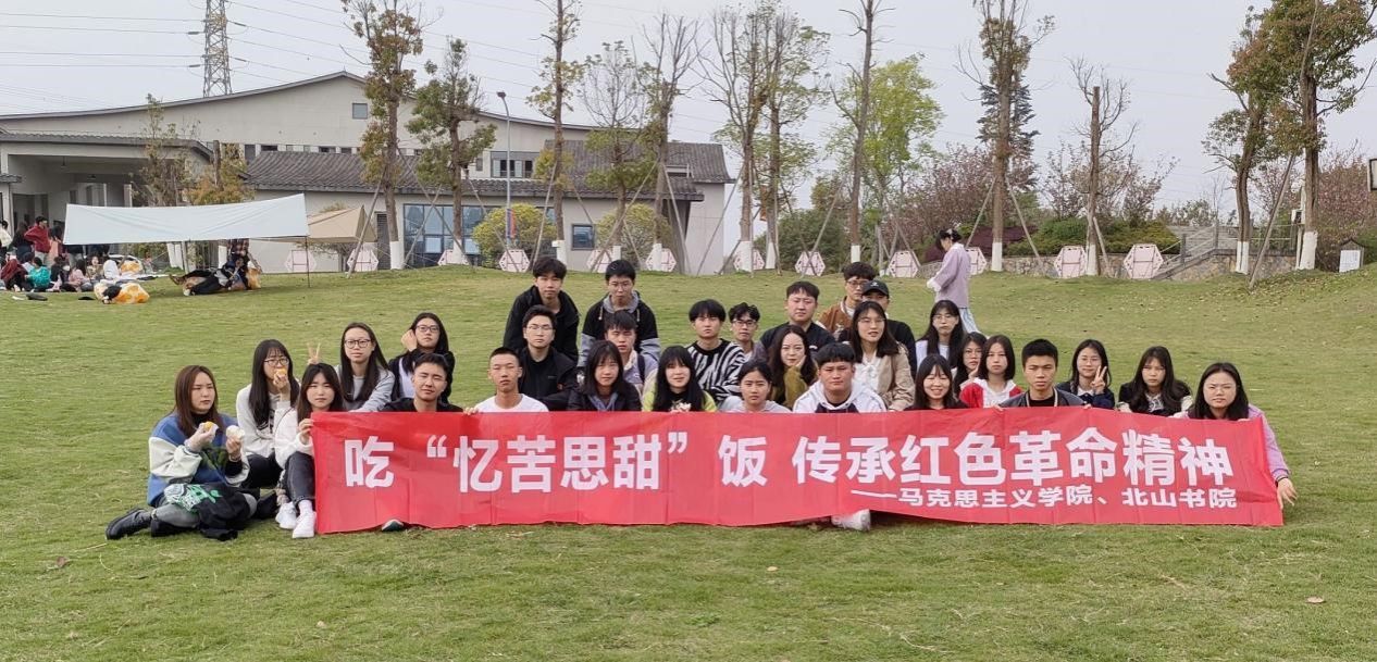 张铭瑶、徐梦笛两位老师联动融合,带领部分异科导师学生参加爱莲书院与马克思主义学院联合举办的青年博学课堂,来自各学院书院的30余名师生一起走出课堂、亲近自然、寓游于学,在花果山开启了野菜鉴赏研学之旅,同学们都兴趣十足,收获了平时很少接触到的各种野菜名称,辨别方式,可使用性等,为以后的生活又增添了不少美味。