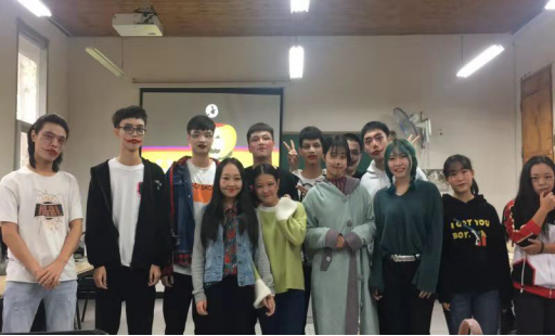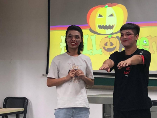 本次课堂活动分为两部分,万圣节来源探究和剧目表演+创意装扮环节。首先唐智盟老师向大家抛出了问题”What do you know about Halloween?”。同学们踊跃回答印象中的万圣节,更多的理解集中于传统而简单的“狂欢、游戏、恶搞”的关键词,同学们的回答使现场气氛逐渐活跃起来。接着,唐老师引入历史典故,以及自己在美国时的万圣节经历,带着同学们走进了真正的万圣节文化内涵,随着跌宕起伏的故事情节和深入的诠释,学生们开始进行对文化差异和生命的思考。