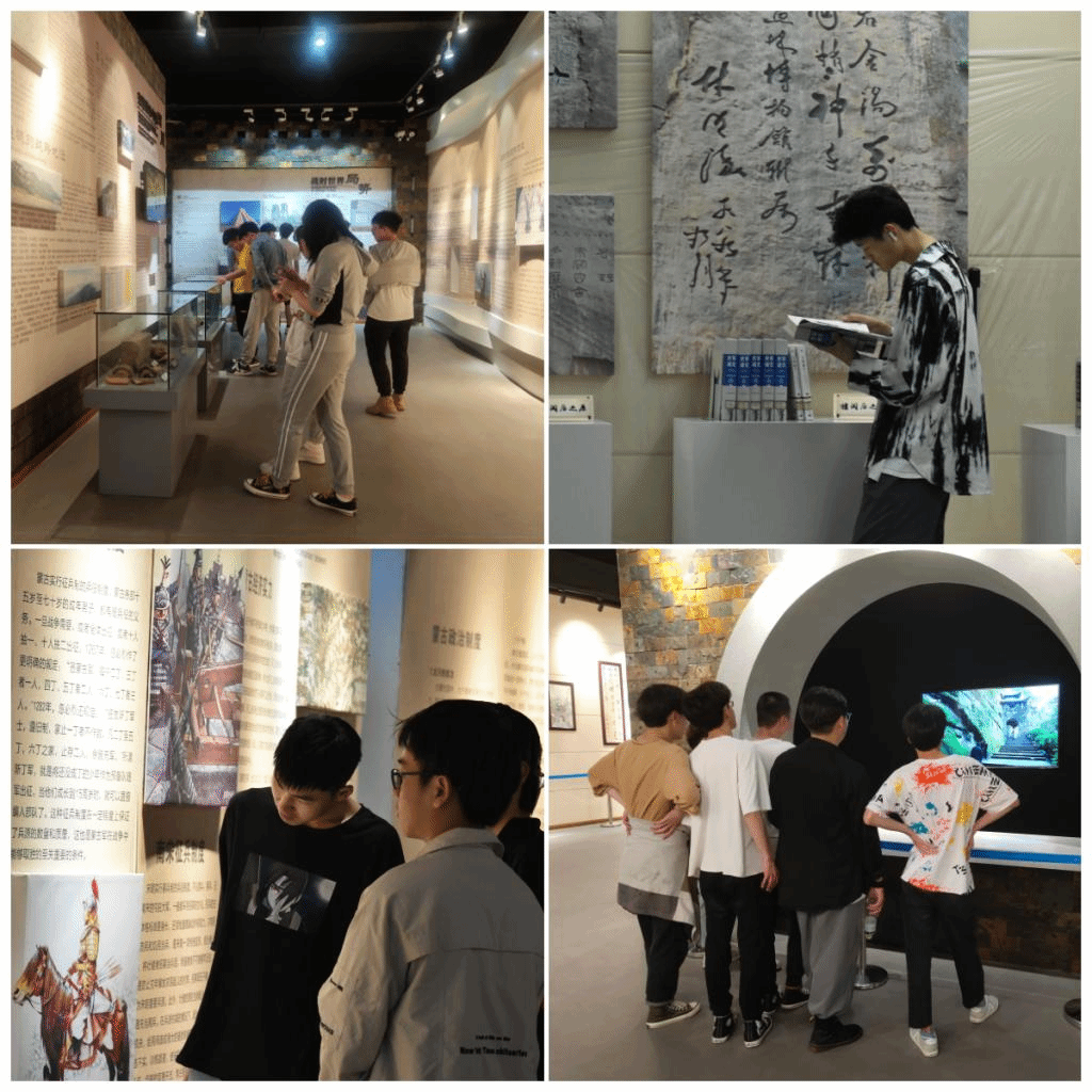 在自由参观的时间里,有的同学被展柜里的戗兽、角替、瓦当、窗棂等文物吸引,驻足观看;有的则走向移通师生作品展区欣赏关于钓鱼城诗词书法、书画作品及钓鱼城文丛;还有不少同学来到博物馆多媒体互动区前观看钓鱼城相关历史纪录影片;展厅陈列的冷兵器模型也吸引着同学们的目光……