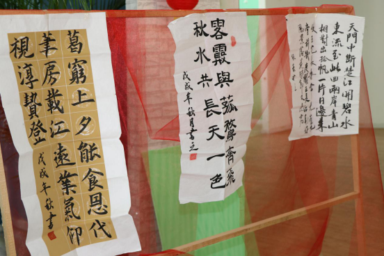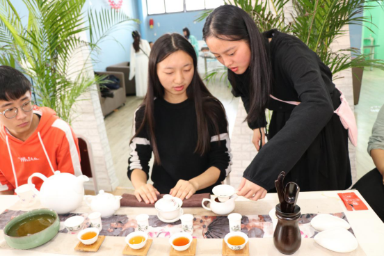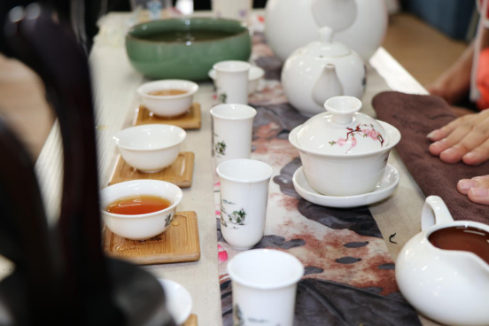 点画如高峰坠石,磕磕然实如蹦也;横画如千里阵云,隐隐然其实有形……书法与美术协会的作品展示,让观众体会到了挥斥方遒的乐趣。还有茶艺的展示专区,用普洱茶,为观众奉茶。熟普茶汤色泽橙黄浓厚,香气高锐持久,香型独特,滋味浓醇。