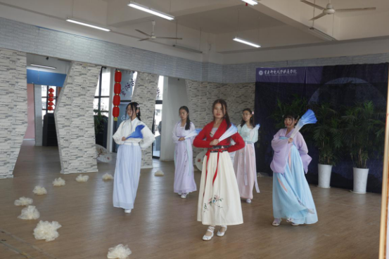 活动的开场,移通学院华韵汉服协会的社员们带来了古典舞《花水月》,她们身着花色各异的齐腰襦裙,婀娜多姿,尽态极妍。将汉服的优雅婉约展现得淋漓尽致;一首名为《为汉服的底吟浅唱》的朗诵,声情并茂,激励在座同袍以及传统文化联盟的成员们在追逐自己的梦想的路上不轻易言弃。