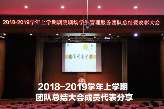 本学期末,剧场学生管理团队在下里巴人剧场召开了2018-2019学年上学期总结暨表彰大会,对本学期的剧场管理工作和团队发展工作进行总结及先进表彰。本次总结大会邀请到正在校外实习的前任队长和部分成员,并分享他们在校学习期间的成长心得以及完满教育带给他们就业的潜在优势,较为立体的给新成员上了一堂生动的完满教育体验课。