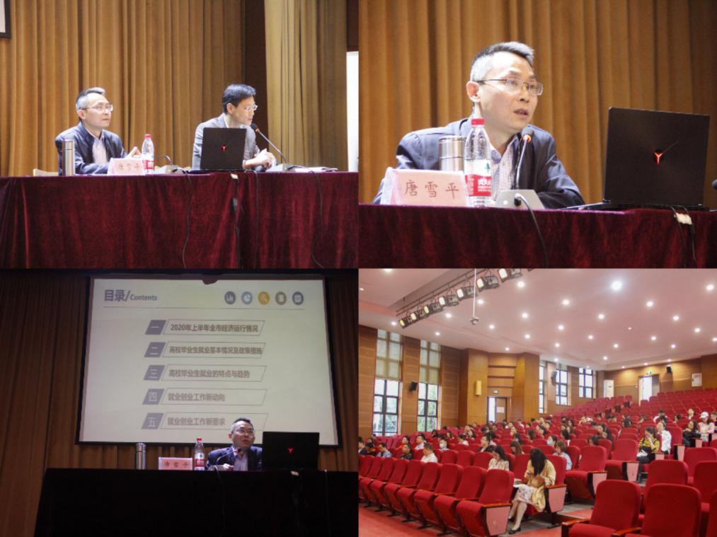 接下来,唐雪平主讲高校毕业生就业工作新形势新政策与新要求。唐雪平从2020年上半年全市经济运行情况、高校毕业生就业基本情况及政策措施、高校毕业生就业的特点与趋势、就业创业工作新动向、就业创业工作新要求五个大的方面进行深度的讲解和分析,让老师们理清楚观念和思路,做好分析和研究,为促进大学生更充分、高质量就业制定有计划的工作。