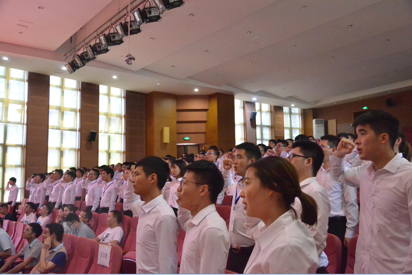 授牌仪式之后,接受了荣光洗礼的新学员带着赤诚与火热的内心,在李勇老师的带领下,庄严宣誓。那一声声来自心灵深处的呐喊,饱含着144位学员的坚持不懈和砥砺前行的决心。