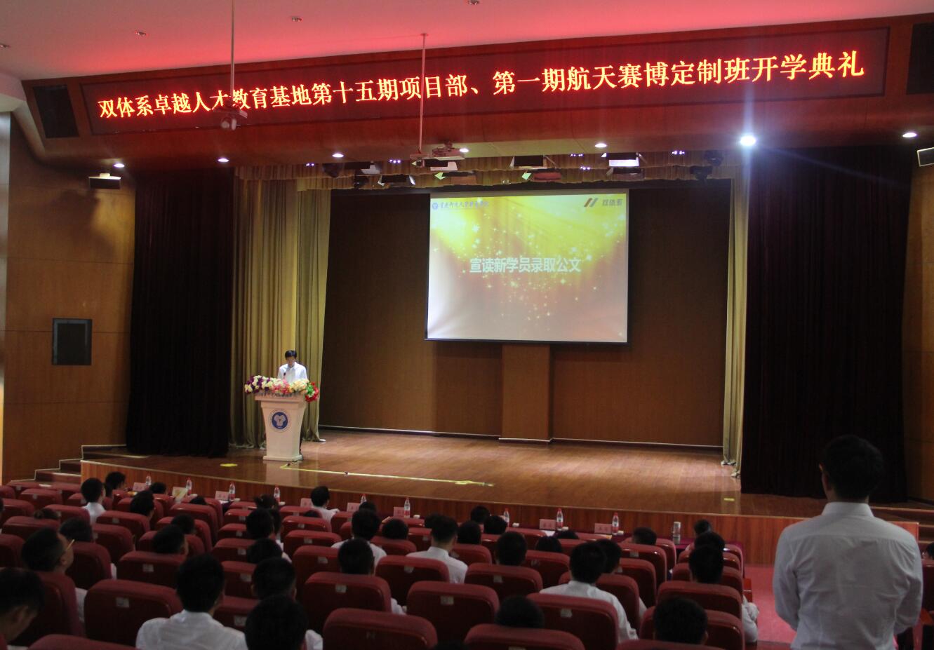 典礼最后由双体系卓越人才教育基地主任、就创中心主任陈仲华老师作为教师代表发言。就最近发生的热点事件,陈主任向同学们解释了规则赋予的执行力度和学习的重要性,并真切的说出了 “有你们真好”这句话,打动了现场每一位学员的心。继陈主任讲话结束,本次第十五期项目部和第一期航天赛博定制班学员开学典礼圆满结束。