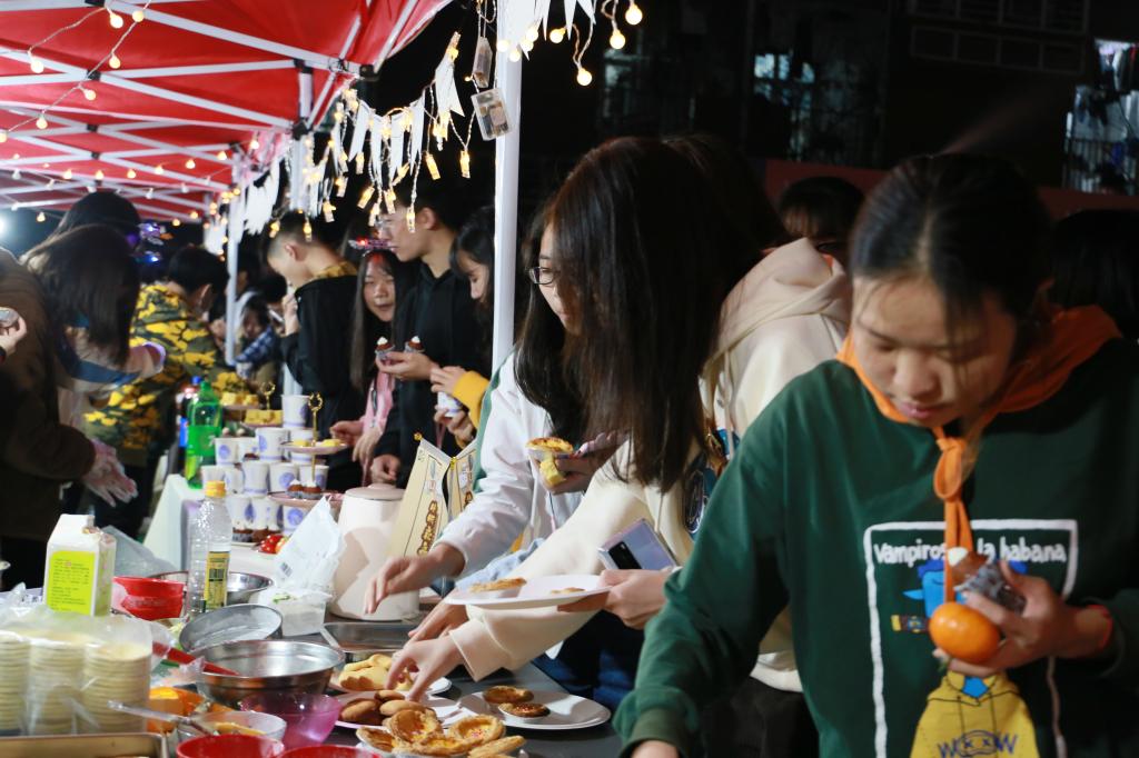 在生日会现场除了这些充满仪式感的环节以外,同学们不仅可以通过“思辨体验区”感受现代puzzle玩具与古代机关解谜玩具的乐趣,体会思辨之美;也可以通过“烘焙体验区”尝试自己烘焙甜点、蛋挞等为家人和室友带去惊喜,体会家庭之美;还可以在“乐享冷餐区”享受各种美食、水果的同时畅快进行师生朋辈交流,体会社区之美。烧脑的解谜游戏、美味的甜品蛋糕、丰富的活动形式,每一个体验区都充满了惊喜,洋溢着欢笑。