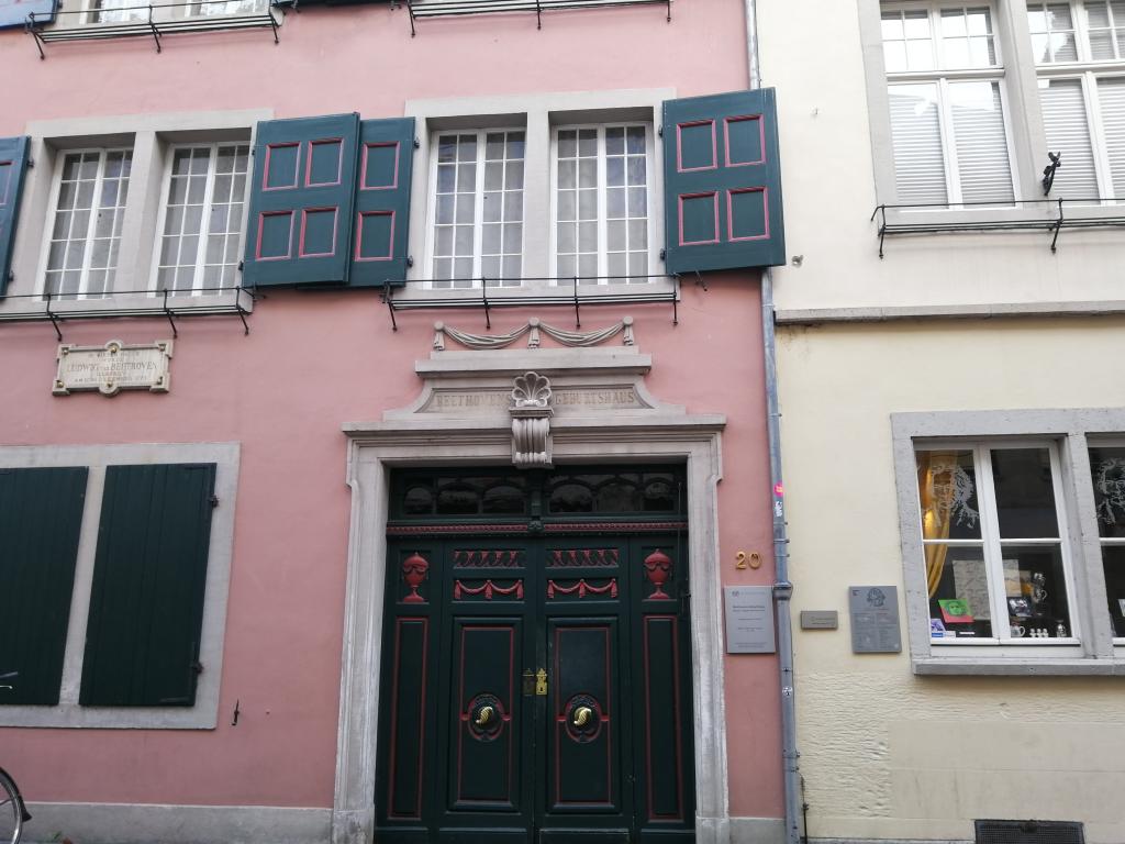 明斯特广场在波恩大学背后,贝多芬的雕像树立在广场中心,手执指挥棒,好像在热情地指挥着他的第九交响曲。贝多芬出生在波恩,并且长期居住在这里,他的故居离明斯特广场不远。世界大战时由于战火,本来说是要拆掉的,幸好十二位有责任心的公民酬钱竭力挽救,才保存下来。可见有的时候,老百姓往往比政府还有远见。故居并不显眼,可见贝多芬生前并不富裕。后来他耳朵无缘无故地聋了,甚至让他产生了自杀的想法。他的房间里存放着很多音乐作品的手稿,两架钢琴和小提琴整齐地摆在二楼的展厅里。墙上挂有很多贝多芬家族的画像,其中那幅最著名的戴着红围巾的贝多芬也在画框里。墙上还有几个不知名的女性画像,人们猜测是贝多芬深爱着的女人。在贝多芬小时候,他爸爸就把他比作是莫扎特一样的天才,后来贝多芬拜了海顿为师,果然天资聪颖。然而,贝多芬的晚年并不愉快,从2006年的那部奥斯卡电影也许就能看出。耳聋、失恋、无子一直困扰着他。创作音乐时还必须戴着大喇叭助听,对于一个音乐人来说无疑是致命的打击。从他写的《命运》和《月光》中,我们都能深深体会到那种内心的消沉与伤心欲绝。在离开贝多芬故居前,我走进视听室,完完整整地欣赏了一遍《月光奏鸣曲第三乐章》。那种恨不得把键盘全部打碎的声音轰轰烈烈地开始,轰轰烈烈地收尾。仿佛苦闷从头至尾地回绕着胸腔,始终无法得以排解。我仿佛突然明白了为什么电影里波恩的大主教会很愤恨地对着晚年的贝多芬说:“你比我想像得还要聋。”其实,耳聋并不是影响艺术的诞生的本质原因,真正影响一个人的,是那驱之不去的苦闷与包袱。