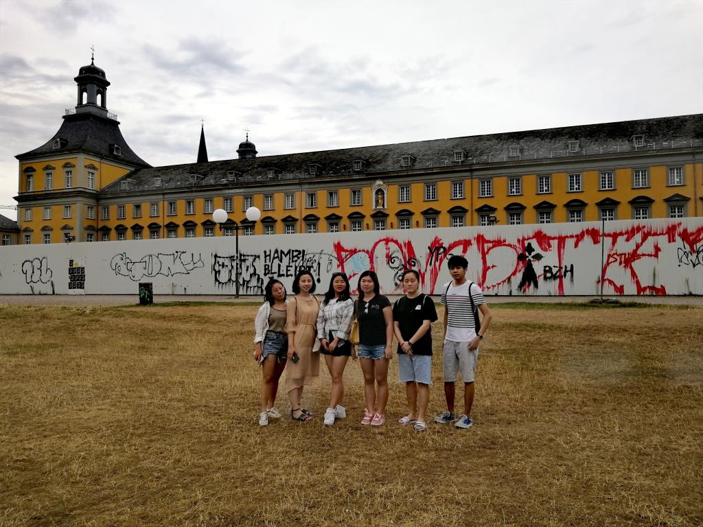 波恩大学坐落在风景秀丽的德国莱茵河畔的联邦德国前首都波恩,是18世纪启蒙运动的产物。作为德国最杰出的综合性大学之一,波恩大学自建校以来培养了包括7名诺贝尔奖得主在内的众多优秀的毕业生,并以其卓越的教学和科研实力蜚声世界。波恩大学并非校园式大学,而是各个建筑分布于整个城市内。大学主楼即前科隆选帝侯宫殿位于市中心,该地区分布着一些现代建筑如法学院,神学院和哲学院等。自然学科主要集中在泊波尔多夫区,以泊波尔多夫宫殿和其他一些19世纪建筑,以及一些新建的现代建筑作为办公楼。泊波尔多夫宫殿花园自1819年作为植物园而存在。计算机学科分布在两个位置:老的供给中心和国家机关楼。心理学位于城北的LVR医院,医药学位于维努斯贝格。个别机构和设施分布在其他城区,如天文学,化学和部分医药学等。与德国许多其它大学相反,波恩大学没有自己的校园。各研究所、研讨会会议室和医学院分散在市内不同地方。不过因为波恩市不大,学生很快就可以从一个上课地点赶到另外一个上课地点,可以步行,也可以骑车。波恩的大学生喜爱自己的大学,因为她就在市中心附近,离莱茵河也不远,宫殿前的大草坪是人们喜爱的聚集场所,下课后可以在那里放松休息。