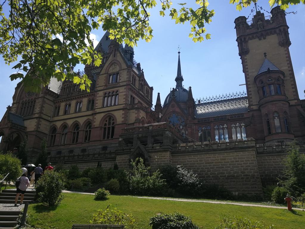我们的第一站,便来到了龙堡,它位于波恩附近科尼斯温特市的半山上,位在七尖峰山自然公园内,山坡是有点坡度,如果想节省时间或者对自己体力不自信的话,可以在山脚下付费乘坐小火车或马车前往。龙堡建于1882-1884,原本是一座由德国富商波恩私人建造的别墅,后来经多次转手最后被德国政府买下并进行重修。城堡里的装饰极尽奢华,登上城堡的高处可以看到莱茵河两岸的风景,非常秀丽!