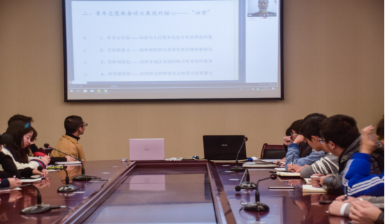 2018年11月14日晚上19点,花果“4+N”志愿者先锋锻造计划第三期中级班第二讲在行政楼A栋107会议室圆满举行。培训会上,学员们共同观看中国青年志愿者协会副会长谭建光教授主讲的“青年志愿服务项目参赛和演讲技巧”现场直播,校团委老师唐彬文与学员们一同学习并现场进行了指导。