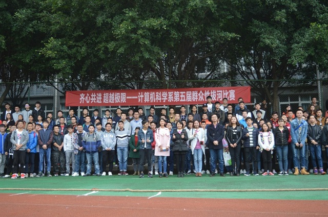延绵的阴雨似乎被计科学子们的热情给吓得躲了起来,久违的阳光在计科系的拔河比赛开幕式上,终于穿过云层,照向了大地。2016年11月10日中午12:15分,计科系第五届秋季群众性拔河比赛在足球场正式开赛。