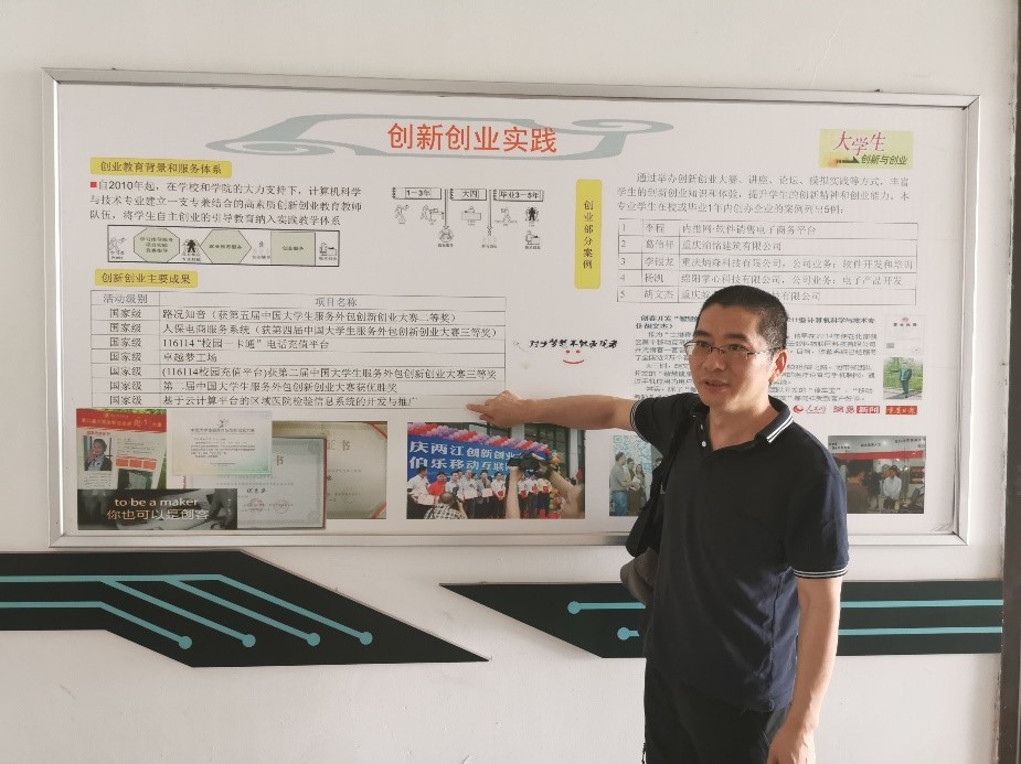 在两院领导会面之后,重庆理工大学计算机与工程学院副院长李梁副教授分别从校区分布、教师以及教研室等分布情况做出了详细介绍。李院长道:学院现有教职工100余人,面向计算机专业教育的专业实验室20个小组,有国家级特色专业计算机科学与技术、重庆市特色专业信息管理与信息系统,全面面向当前信息产业特别是大数据、云计算、人工智能的迅速发展,力求构建“坚持科研教研促教学、创新人才培养模式、产学研相结合”的特色教育模式。为响应国家的培养基础学科拔尖人才的号召,从大一学生中选拔40名学生作为重点培养的对象。该校在全校范围内聘请班导师,年级长,专业教师以及创新实验室指导老师四个维度的就业帮扶小组,实现全员参与就业,效果良好。