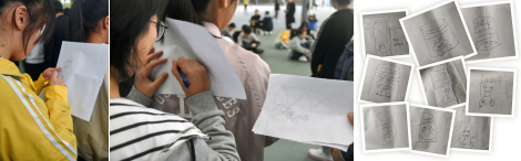 同学们按照要求分为男女两组,每组派第一位队员到李思雨主席处看题,然后根据题目画图,让组员们看图猜题。对于不善绘画的“灵魂画手”一不留神就会将图画的天马行空,这无疑增加了猜题者的难度。于是,绘图者下笔前先需思考该如何更好的表达,虽是绘画,可这一点已像极了构思写作。