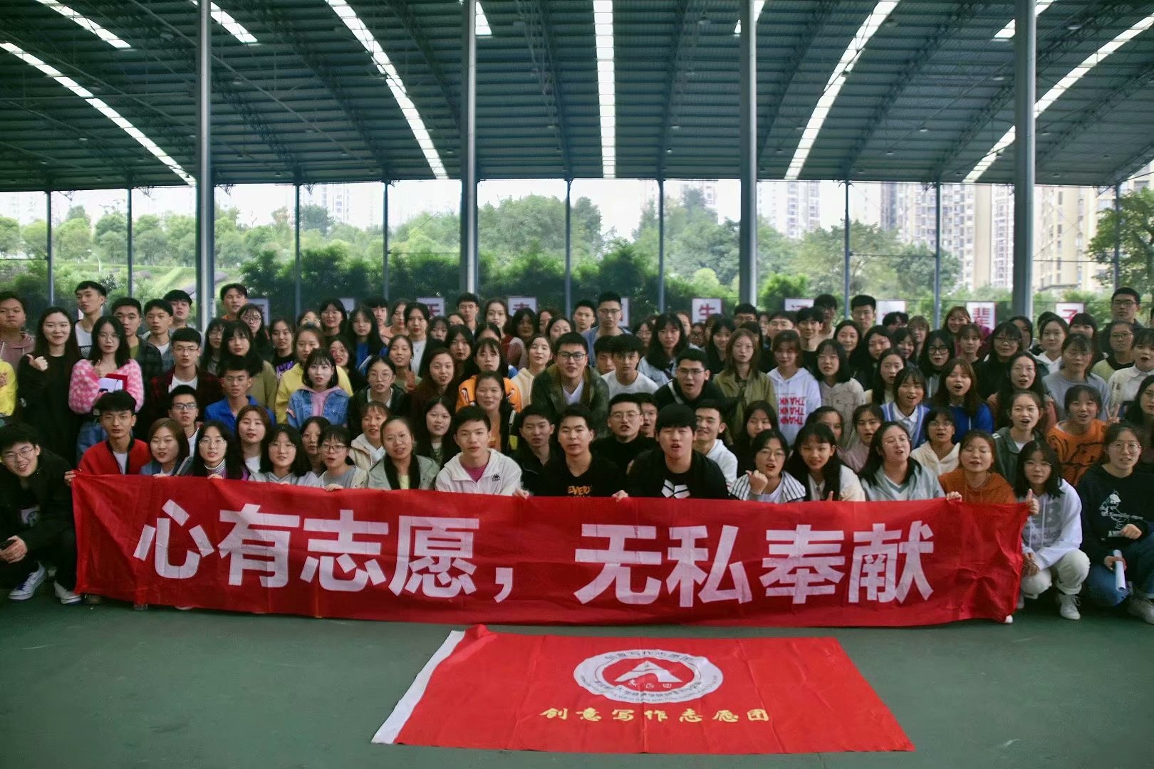 大家聚集在“心有志愿,无私奉献”的横幅下亲密无间,明天他们将以崭新的面貌迎接“创意写作志愿月”的到来。