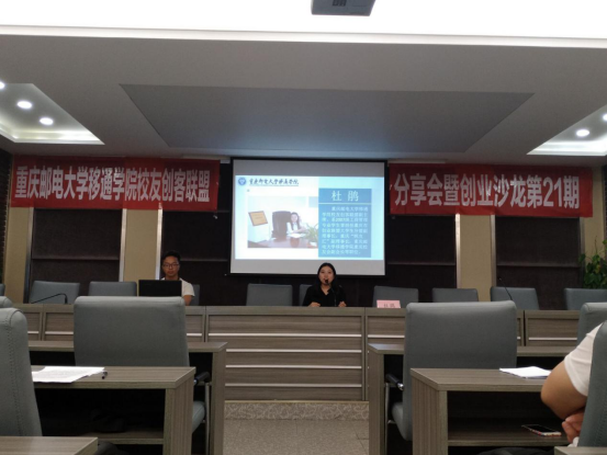 此次分享会我们有幸邀请到重庆邮电大学移通学院校友创客联盟主席柳洋,系2007级网络工程专业校友,曾担任重庆邮电大学移通学院大数据与软件学院校友会会长;重庆邮电大学移通学院校友创客联盟副主席杜鹃,系2007级工商管理专业校友,曾担任重庆邮电大学移通学院重庆校友会副会长。