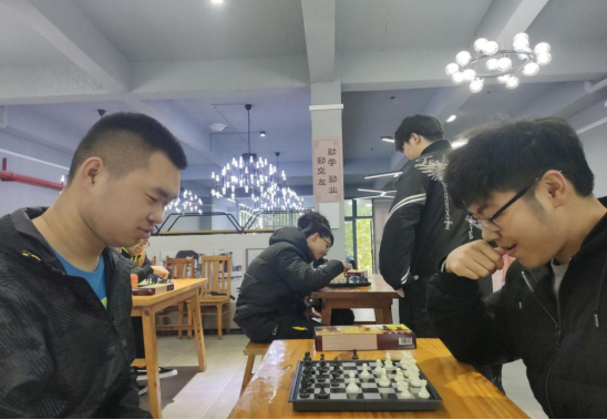 了解国象的基本规则后,早就跃跃欲试的同学开始了双人对弈。在学长的言传身教下,同学们很快就熟悉国象的走法,展开激烈对战。黑白分明的棋盘,颗颗怪样的棋子,专注下棋的棋手,课堂中洋溢着轻松愉悦的气氛。尽管大家棋艺不够精练,但仍然满怀斗志在棋盘上激烈对战,玩的不亦乐乎。