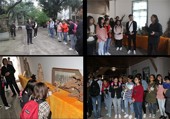 品味根雕,寻根文化。10月14日,非物质文化遗产研究中心40余名学生研究员,在中心彭伟老师的带领下,前往北碚区天府镇彭勇根雕博物馆开展非物质文化遗产根雕制作技艺调研。欣赏根雕作品,聆听艺人故事,围绕彭勇老师的艺术创作之路及其代表作,去探索根雕艺术“化朽木为神奇”的深刻内涵。